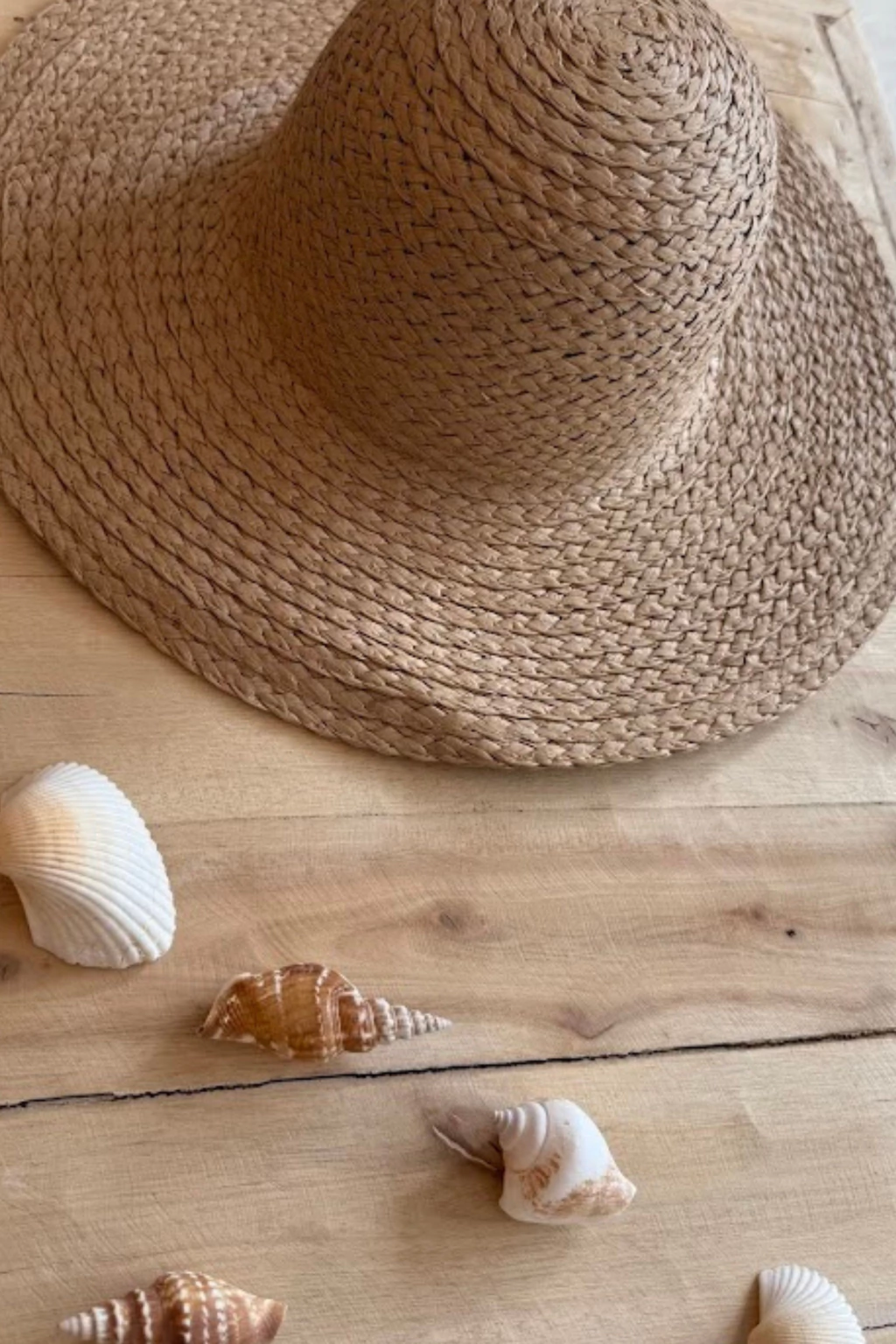 Un sombrero simil rafia con ala ancha iseal para prtegerse del sol. Color moka.